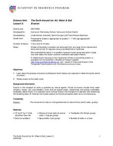Fourth graders investigate the causes of erosion. Through several demonstrations including one using sugar cubes and warm water, they observe the effects of erosion. In groups, 4th graders conduct similar experiments and record their...