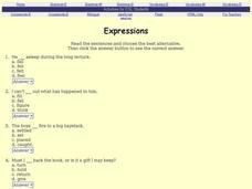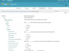 In this recognizing correct grammar in sentences instructional activity, learners read incomplete sentences, use context clues, and choose the correct verb to complete the sentences. Students answer 10 multiple choice questions and click...