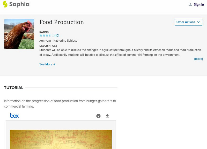 Students will be able to discuss the changes in agriculture throughout history and its effect on foods and food production of today. Additionally, students will be able to discuss the effect of commercial farming on the environment.