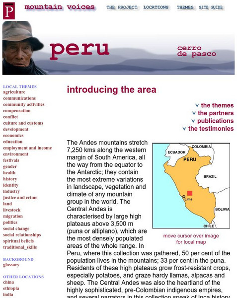 Find out about Peru and the Cerro De Pasco area directly from the mouths of the people who live there. Through the work of the Panos Institute, learn about various themes about Peru, such as economy, politics and much more. Summaries and...
