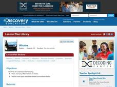 Students compare and contrast the two types of whales. In this biology instructional activity, students research the characteristics of their assigned whale. They compile their findings in a folder.