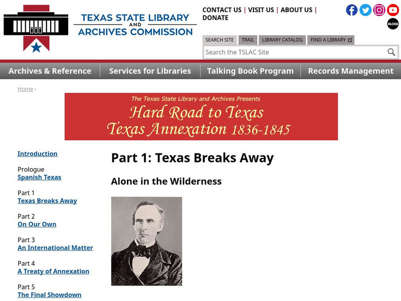 Texas State Library and Archives Commission: Hard Road to Texas 1836 1845: Texas Breaks Away Alone in the Wilderness