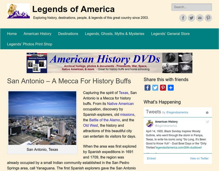 Legends of America: Texas Legends: San Antonio a Mecca for History Buffs