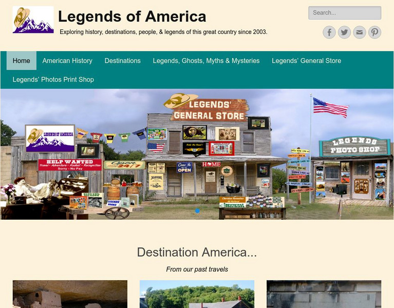 "A Travel Site for the Nostalgic and History Minded". If you love history, you'll love this site. Featured is much detailed information on history, people, legends, ghost towns, outlaws, and so much more.