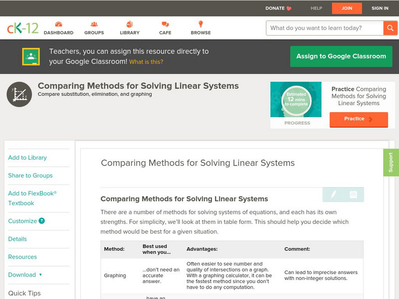 Khan Academy: Elimination Method Review (Systems of Linear Equations)