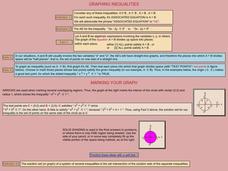 In this graphing inequalities instructional activity, students create graphs of algebraic expressions containing inequalities. This two-page instructional activity contains explanations and examples prior to the exercise. The first...