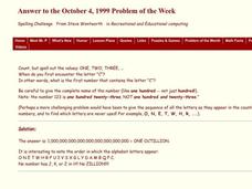 In this algebra worksheet, students count and spell out the value of the integer. In this game of spelling, they use algebra to answer the questions of which letters were not ever used. There is an answer key.