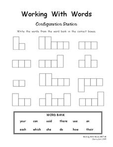 In this vocabulary worksheet, students analyze 8 commonly used words. Students complete 35 activities with these words including sentence writing, alphabetizing, word puzzles and a configuration grid.
