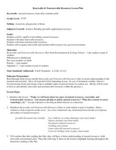 Students identify renewable and nonrenewable resources. In this earth science activity, students construct a T-chart of renewable and nonrenewable resources.