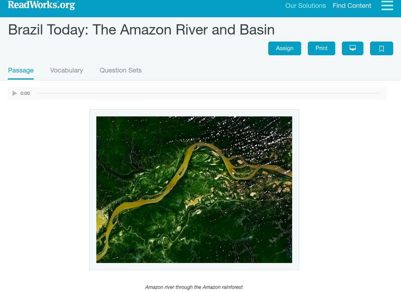 [Free Registration/Login Required] An informational text about the Amazon River Basin in Brazil. A question sheet is available to help students build skills in reading comprehension.