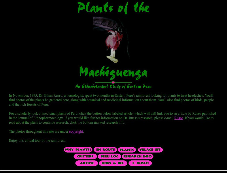 A good source of info on medicinal plants used by native Amazonian tribes to this day. Enjoy a virtual tour of an Eastern Peru rainforest.