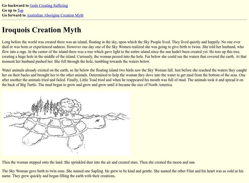 This resource provides an interesting myth of creation developed by the Iroquois people.