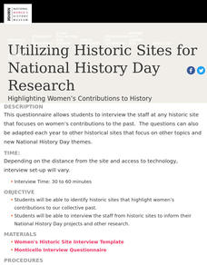 The National History Day Research program is designed to permit young historians to interview the staff at any historic site. As part of Women's History Month, class members select a site that focuses on the contributions of women. Using...