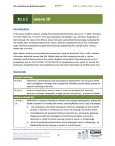 I know exactly how you feel. That may be a statement between Henrietta Lacks and John Moore. Scholars read John Moore's story and compare his story of cell use to that of Henrietta. Learners record in a vocabulary journal, analyze...