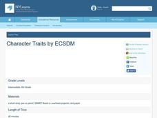 Using a three-column chart labeled "Character," "Action," and "Trait," pupils analyze the traits of several characters from a short story. The instructional activity is designed for a SMART board, but a teacher could easily do the...