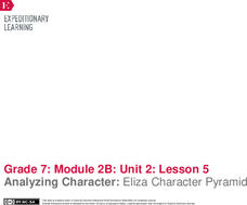 Building a pyramid is not as hard as it looks! Scholars analyze the character of Eliza in Pygmalion by crafting a character pyramid about her. After discussing a model pyramid, pupils receive a blank Eliza Doolittle Character...