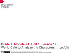 Order up! Welcome to the World Café, where scholars engage in small-group discussions based on Katherine Paterson's novel Lyddie. As pupils circulate around the room, they talk with classmates about the novel's characters, setting,...