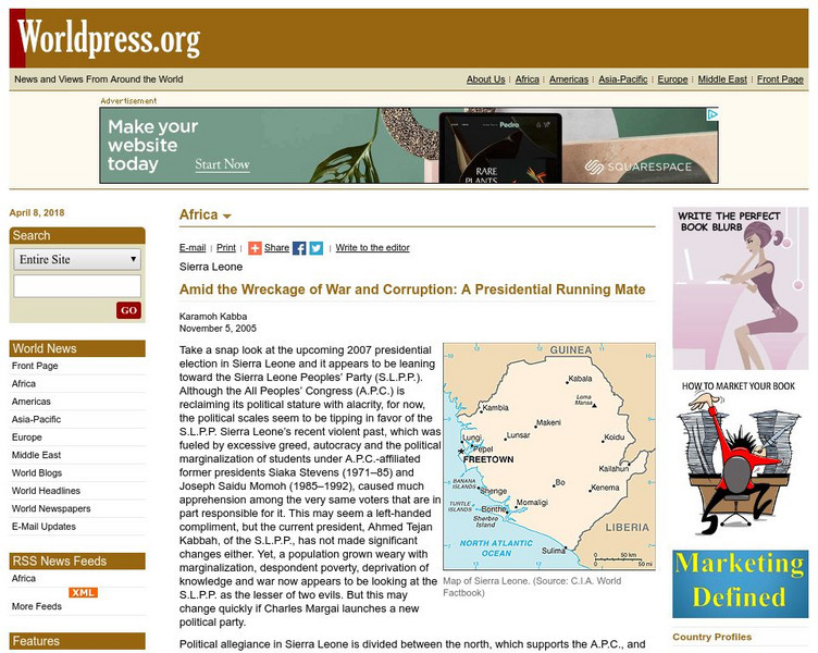 This article analyzes the political situation in Sierra Leone prior to its elections in 2007. The political parties and their potential candidates are described. [Date of Article: November 5, 2005]