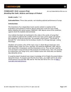 Students listen to and discuss the purpose of protest music. They analyze an editorial cartoon related to Jim Crow and read questions from the literacy tests given to African-Americans. They work together to write a song about the...