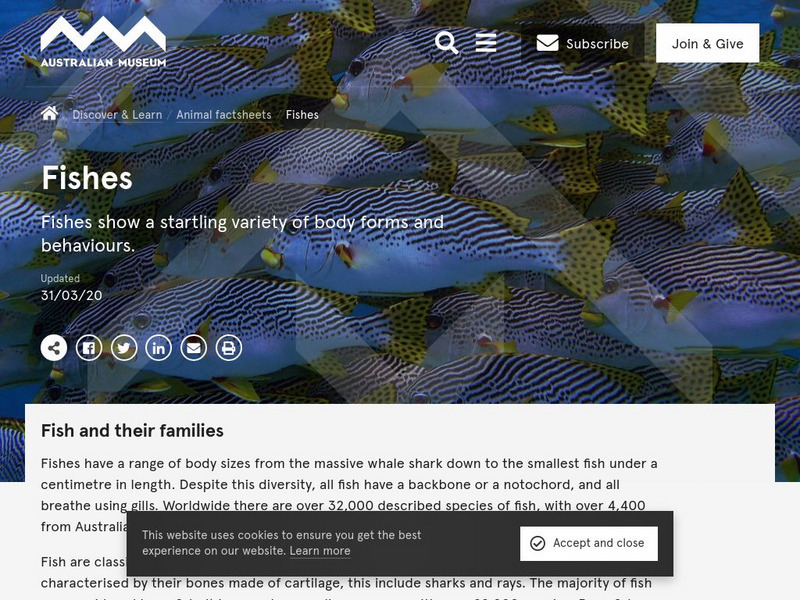 The Australian Museum provides a comprehensive site all about fishes. What is a fish? Learn about its scales, bones and fins.