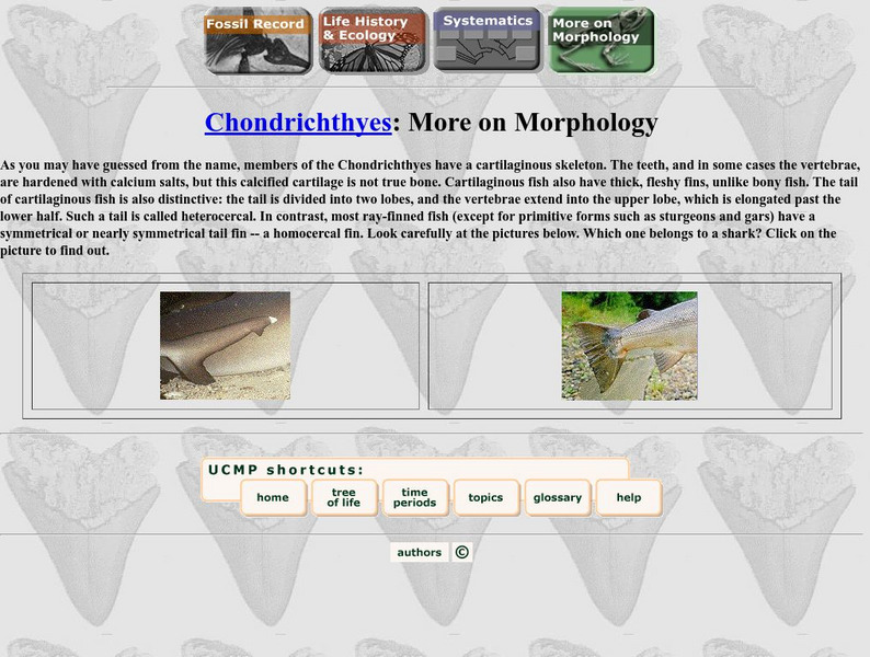 Good introduction from Berkeley's department of paleontology, gives a brief history and the defining characteristics of the class of Chondrichthyes.