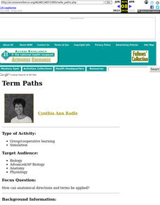 Students use a variety of creative writing tools within this assignment: poems on particular organ systems, write a short story and/or create a word graph. They are involved in a demonstration of lactic build up in the muscles, a...