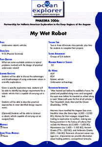 After hearing about the 2006 PHAEDRA mission that explored the Aegean Sea, middle schoolers work in groups to create a robotic vehicle. They must consider power, propulsion, and other vital systems. Use the multitude of external...