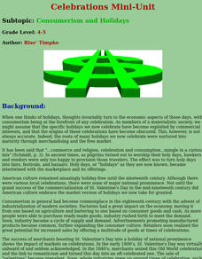 Students explore the free enterprise system and the role that buying and selling of holiday goods have upon the economy. They recognize and demonstrate that advertising design influences one's life.