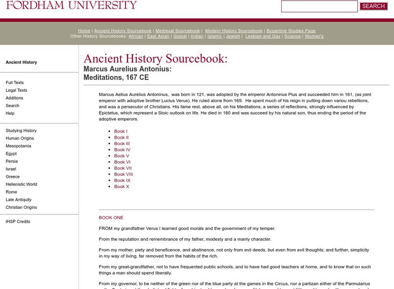 Fordham University: Ancient History Sourcebook: Marcus Aurelius Meditations