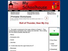 In this online interactive Roll of Thunder, Hear My Cry activity, students respond to 14 multiple choice reading comprehension questions regarding the book.