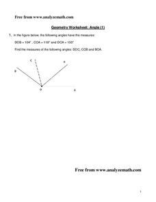 For this geometry worksheet, 10th graders solve for the missing angles using the angles theorems. There are 3 questions asking about angle bisectors and missing angles.