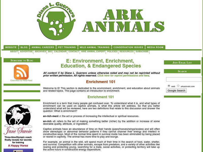 This article gives a good overview of the topic of captive animal enrichment -- keeping captive animals healthy and thriving. Good for those interested in animal welfare, animal keeping occupations, or a general interest in the whole...