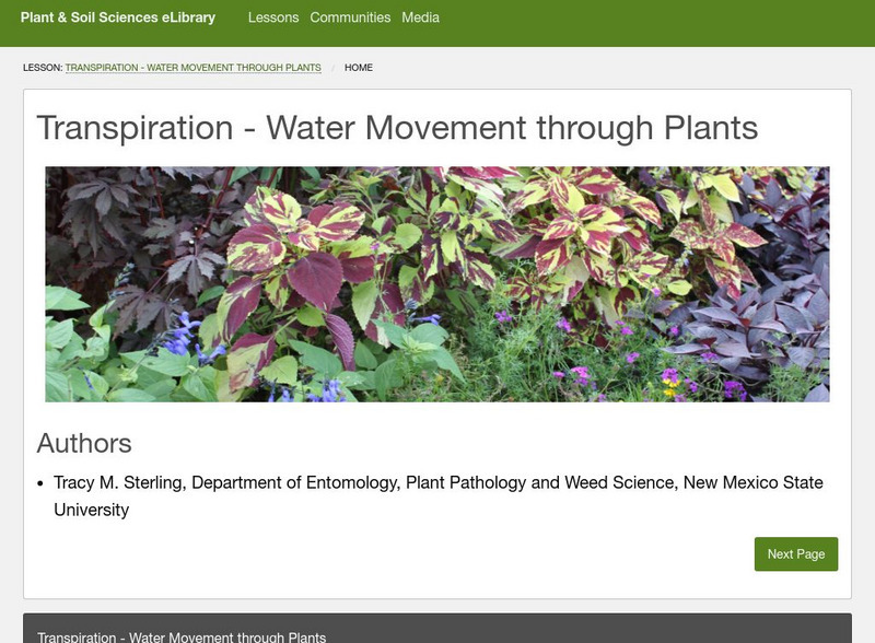 This tutorial examines how water moves through a plant. Follow the pathway that water takes through plants from the roots to evaporation from cells in the leaves. Learn what controls rates of transpiration, how environmental conditions...