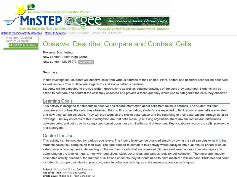 This investigation allows young scholars to observe cells from multiple sources. Plant, animal and bacterial cells will be observed as well as cells from multicellular organisms and single-celled organisms. After providing written...
