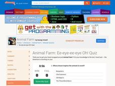 Students participate in a reader's theater using farm animals in the novella Animal Farm. In this Animal Farm lesson plan, students evaluate interpretations using the text, personal experience, and historical events.