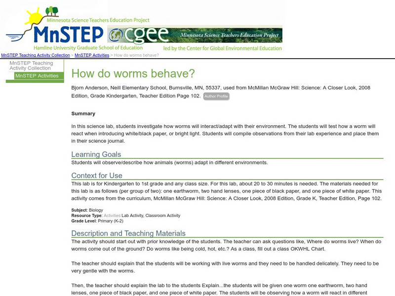 Learners investigate how worms will interact and adapt with their environment.
