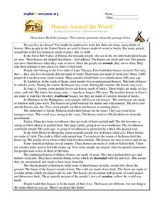 In this cultural worksheet, students read a passage about different types of houses and dwellings around the world. They then answer the 10 questions on the worksheet.