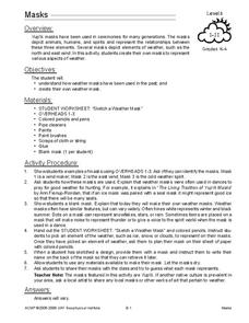 Students examine how weather masks were used and design their own. In this weather mask lesson, students look at examples of weather masks before planning one of their own. They sketch the mask on the associated template and build it...