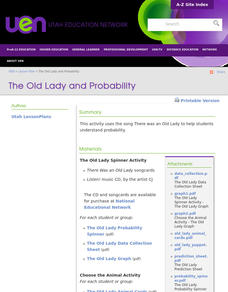 First graders practice probability by playing various games associated with song There Was an Old Lady.