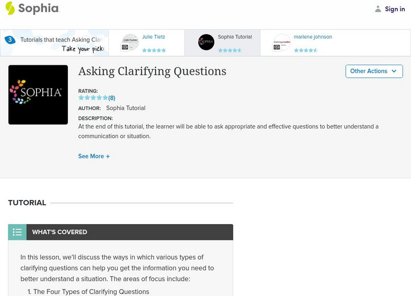 At the end of this tutorial, the learner will be able to ask appropriate and effective questions to better understand a communication or situation. It is 2 of 3 in the series titled "Asking Clarifying Questions."