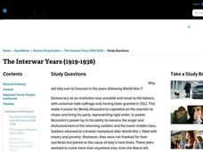 In this online interactive history worksheet, students respond to 10 short answer and essay questions about years between World Wars I and II.