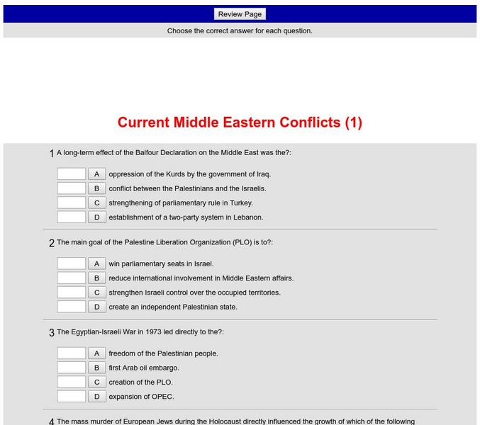 Historyteacher.net: Global Studies: Current Middle Eastern Conflicts Quiz (1)