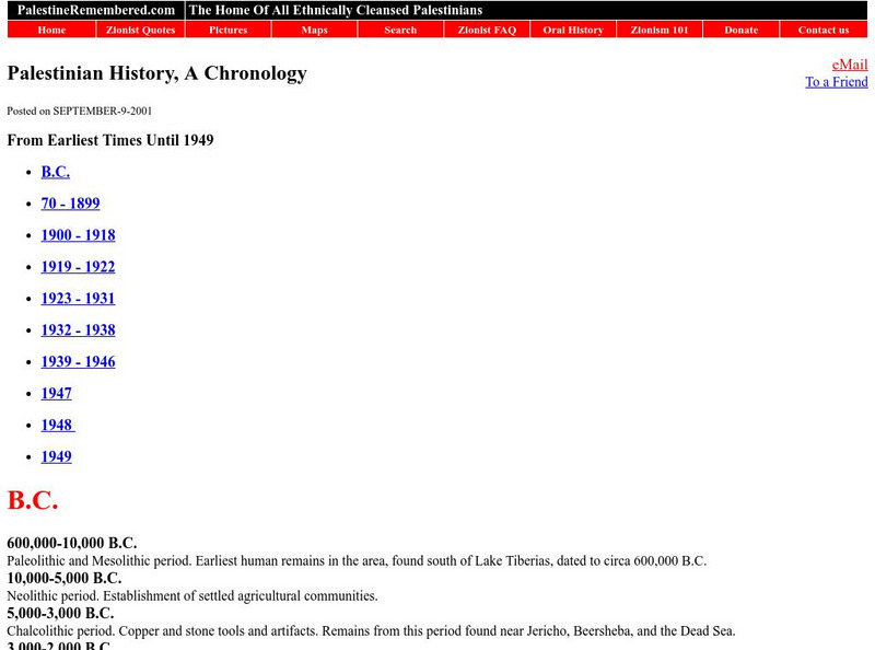 Israel Ministry of Foreign Affairs provides a quick look at the history of Israel. Use the blue toolbar at the top to read about biblical times, foreign domination, and statehood. Clicking on the underlined words will take you to even...