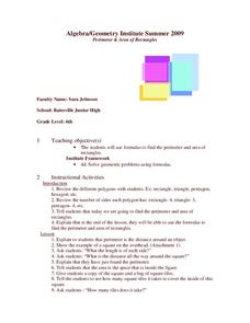 Sixth graders solve for the area and perimeter. For this geometry lesson, 6th graders investigate polygons and use a formula to find the area and perimeter. They find the area and perimeter of various polygons.