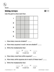 Using arrays for multiplication is the subject of a two-part reading comprehension instructional activity that asks kids to first read a short passage about arrays and then to respond to a series of questions based on the text.