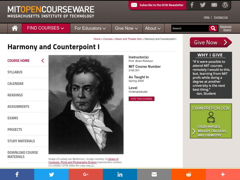 Mit: Open Course Ware: Harmony and Counterpoint I