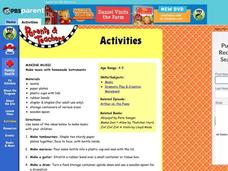 Budding musicians engage in an exciting instructional activity which has them make musical instruments out of ordinary household items. By using paper plates, plastic cups, rubber bands, storage containers, and wooden spoons they make a...