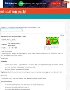 Students create holiday cards with poems in the shape of a Christmas tree. The poems tell how students spread joy this holiday season.