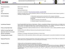 Sixth graders utilize Excel or other spreadsheet software to create both text and numerical valued columns to produce a Christmas or birthday wish list. They study the difference between text and numerical values for column use and...