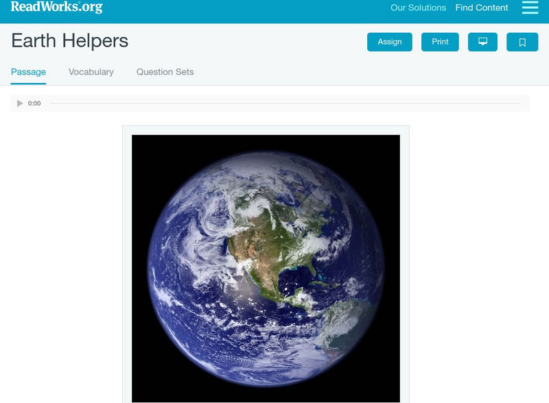[Free Registration/Login Required] An informational text about working together to make the Earth a better place. A question sheet is available to help students build skills in reading comprehension.